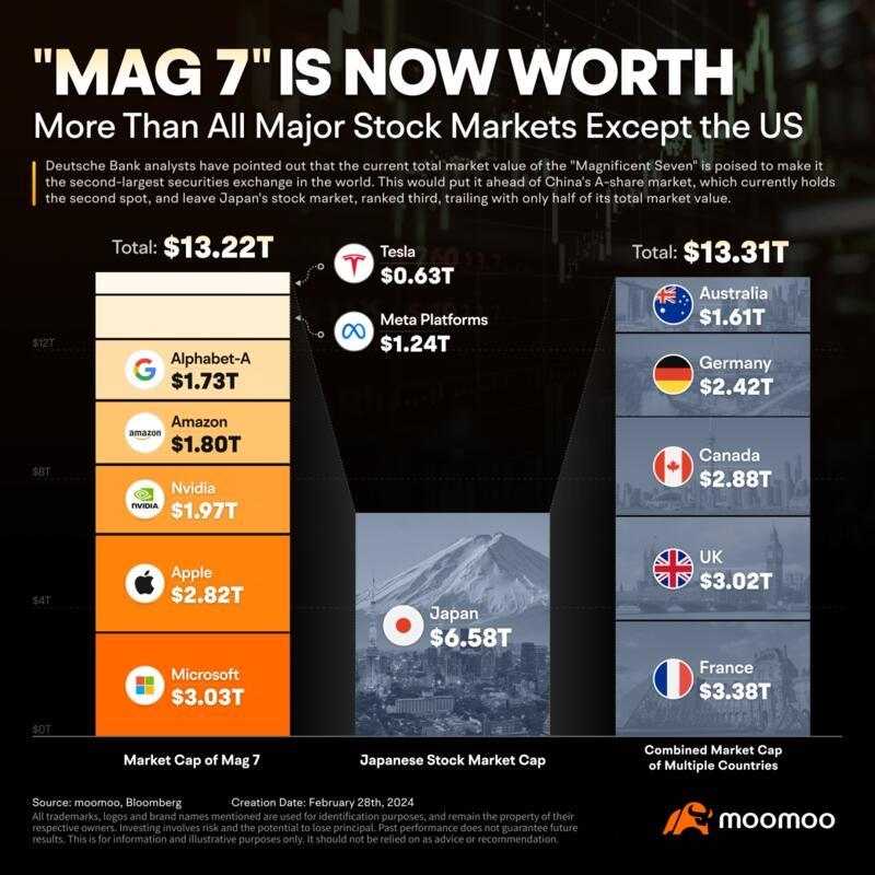 The Magnificent 7 now account for an eye watering 25% of the market cap of the world stock market (MSCI World).