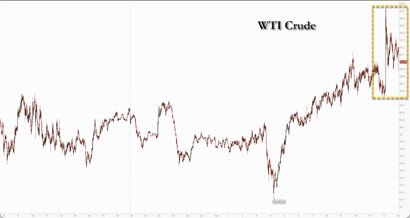 In energy markets, WTI futures briefly spiked into $63/bbl handle and have since retreated to $62/bbl.