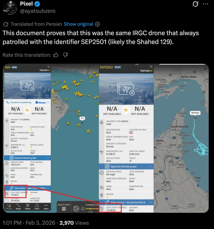 "USS Abraham Lincoln (CVN 72) was transiting the Arabian Sea approximately 500 miles from Iran's southern coast when an Iranian Shahed-139 drone unnecessarily maneuvered toward the ship. The Iranian drone continued to fly toward the ship despite de-escalatory measures taken by US forces operating in international waters," US Central Command (CENTCOM) Spokesman Capt. Tim Hawkins said.
