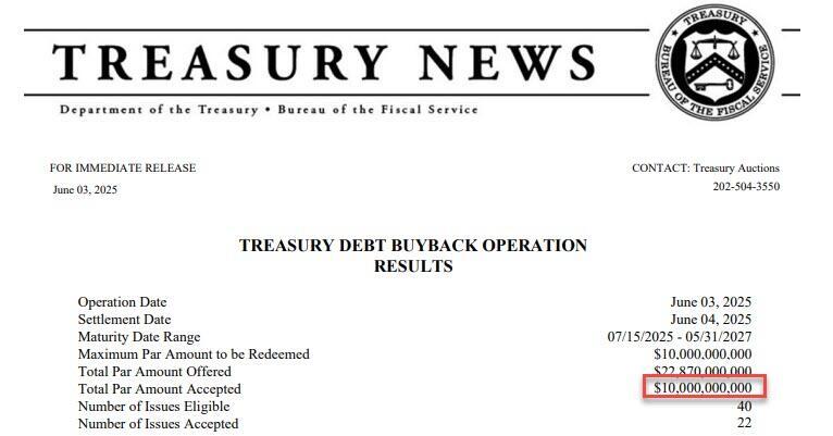 And while the maturity range of the cusips accepted for buyback was of low duration, in the interval between July 15, 2025 and May 31, 2027, we are about to see sizable increases in the total buyback size of longer duration treasuries.