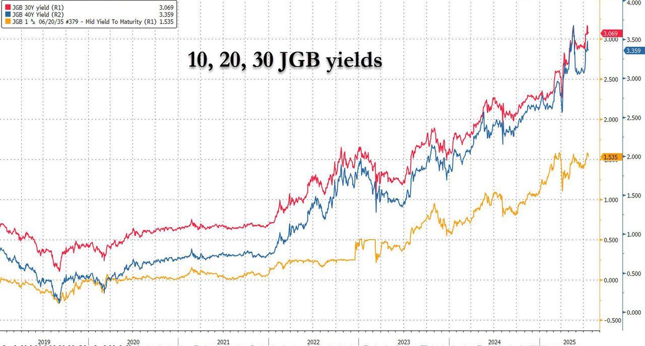 Concerns that Sunday's vote will force the LDP to make concessions to smaller parties touting policies that will strain public finances have led to a sell-off of Japanese government bonds and the yen. Yields on 10-year Japanese government bonds hit their highest level since the 2008 financial crisis last week. Yields on 20, 30 and 40 year JGBs are at or near all time highs.