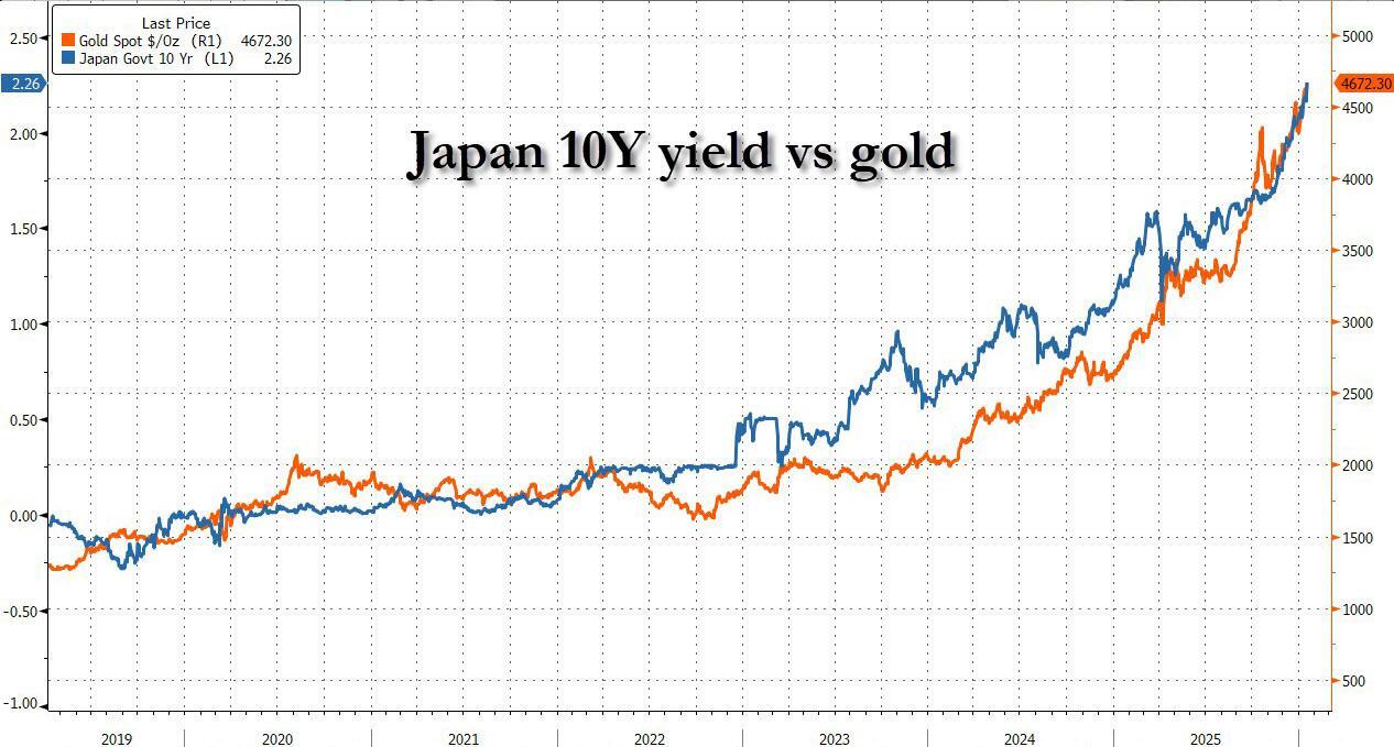Making sure inflation rises even more, Takaichi's administration plans a new national security strategy this year after deciding to hasten a military build-up that will lift defence spending to 2% of GDP, a sharp break from decades in which Japan capped such outlays at around 1%. Translation: even more spending and even more debt monetization by the BOJ.