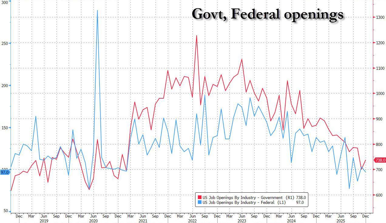 One curious observation: after tumbling to a 4 year low, the number of government job openings rose from 701K to 738K.