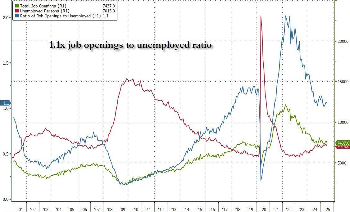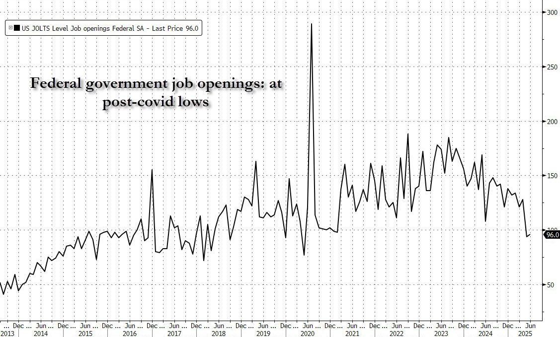 A testament to (what's left of DOGE), is that Federal job openings remained near the post-covid cycle lows, rising just 2k from 94K to 96K.