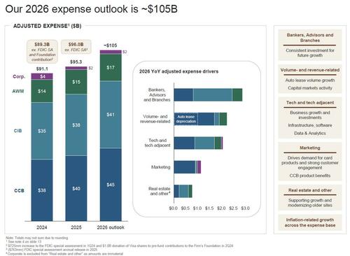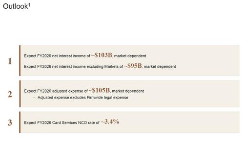 Finally, while the historical numbers were mixed, all eyes were on the bank's guidance. Here, JPM reiterated what we already knew - expenses would be $105bn for FY26...