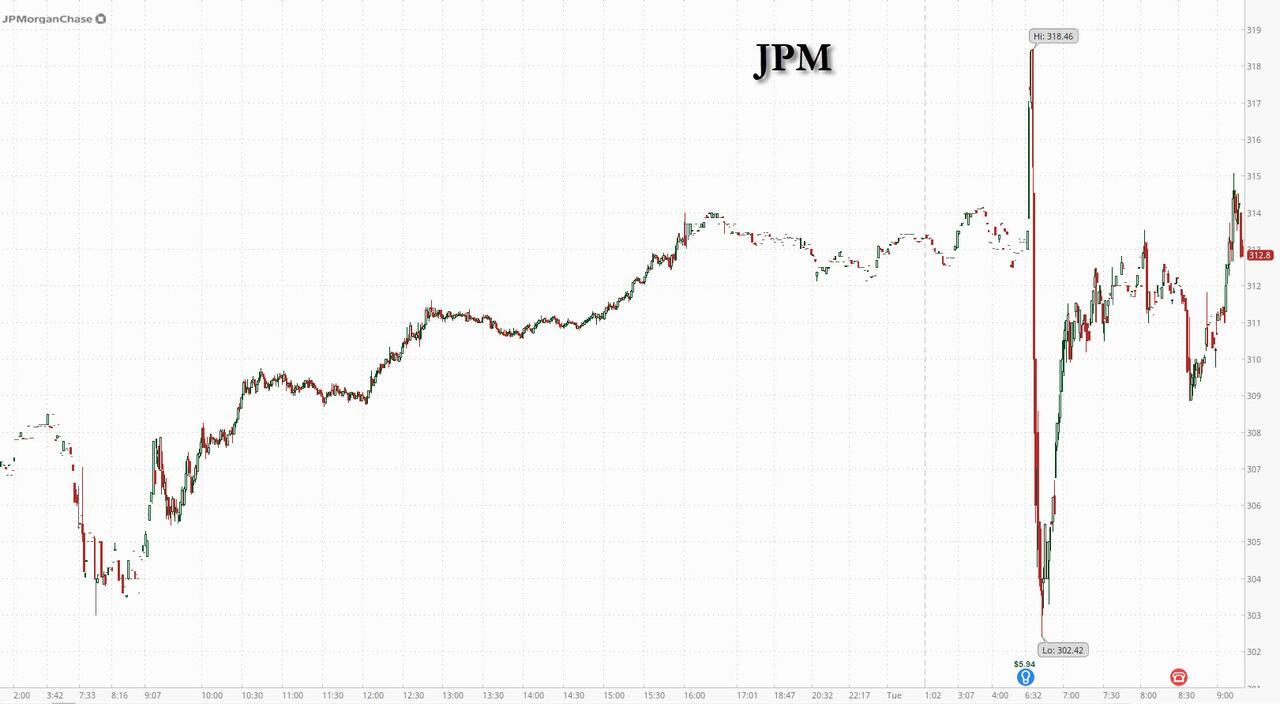 Shares traded about 3% lower in the immediate aftermath of JPMorgan’s results announcement, but recovered some of their losses to trade less than 1% below Monday’s close.