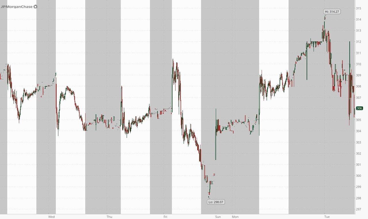 In response, JPMorgan shares swung between gains and losses premarket. Now down around 0.5%. Still, they are faring better than S&P 500 contracts, with futures down over 1%.