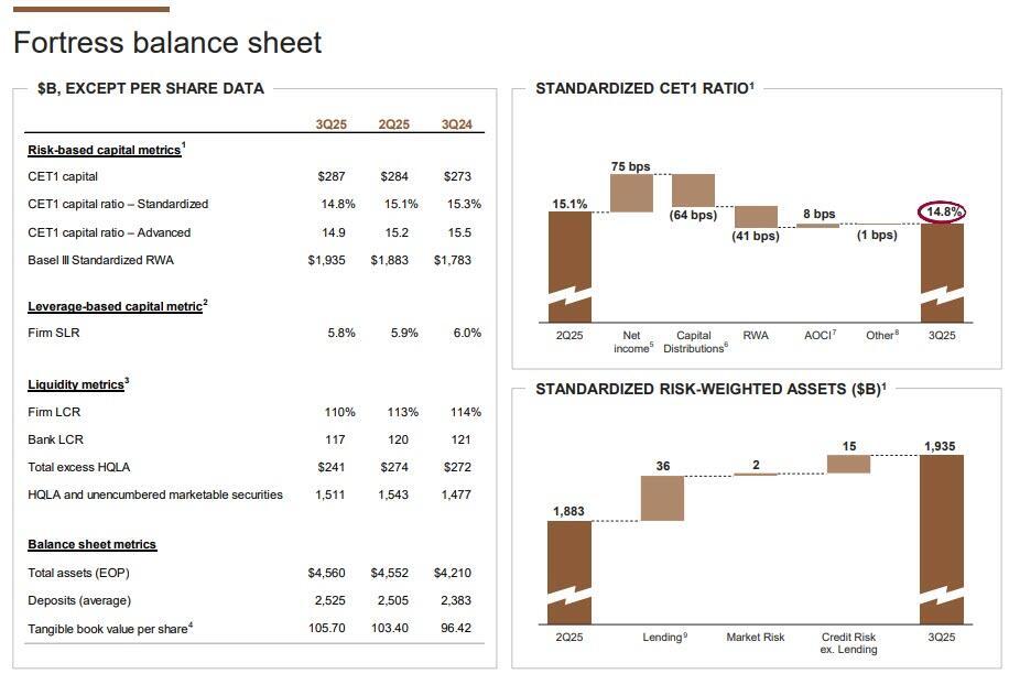 - Standardized CET1 ratio 14.8%, missing estimates of 15.1%