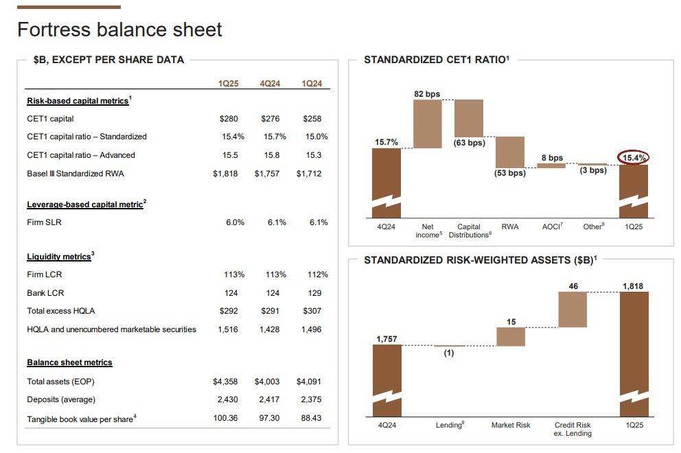 - Standardized CET1 ratio 15.4%, missing estimate 15.7%