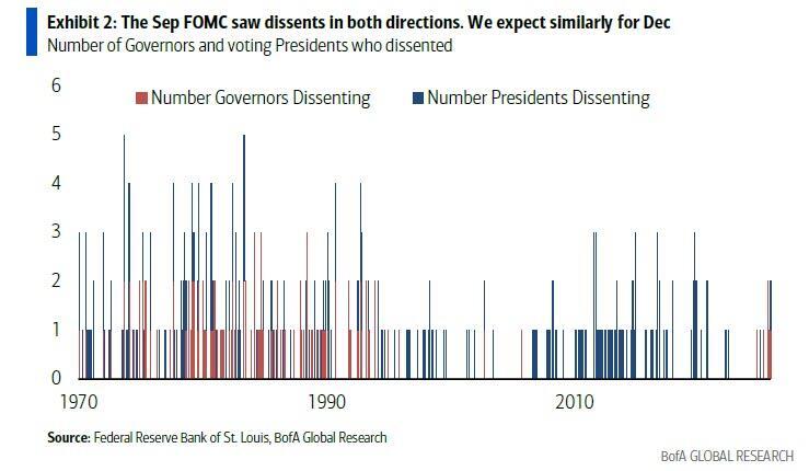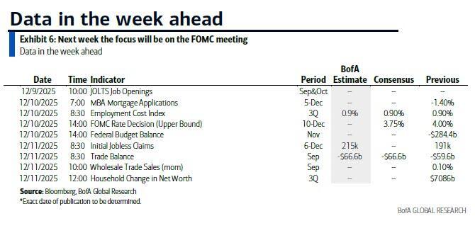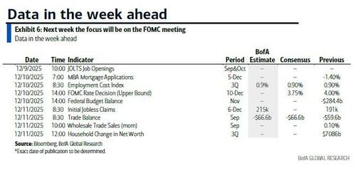 It's a busy week for both economic news and central banks, with all roads pointing to Wednesday’s FOMC, where overwhelming consensus is for the Fed to deliver a final and third 25bps rate cut for 2025, making it 6 cuts and 175bps in this easing cycle since September 2024 (there was a very painful path to get here with several communication mix ups by Fed officials).