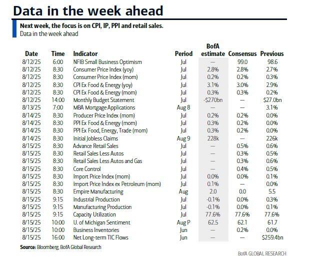 As we move into mid-August, markets are bracing for a surprisingly busy week, with several key events and data releases likely to shape sentiment; of these, the most closely watched will be tomorrow’s US CPI report, which after the last week of July which had both the jobs report and the Fed meeting, could prove to be one of the larger events of the summer for markets, according to Deutsche Bank's Peter Sidorov.