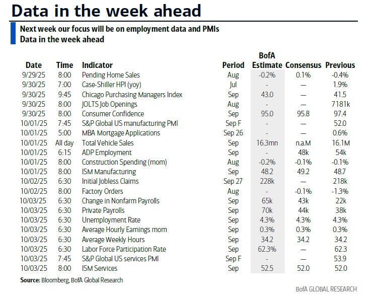 Finally, looking at just the US, key economic data releases this week are the JOLTS report on Tuesday, the ISM manufacturing index on Wednesday, and the employment report and the ISM services index on Friday. There are several speaking engagements by Fed officials this week, including events with Governor Jefferson on Tuesday and Friday. But again, if the federal government shuts down on October 1, most data releases from federal agencies will be postponed until after the government reopens.