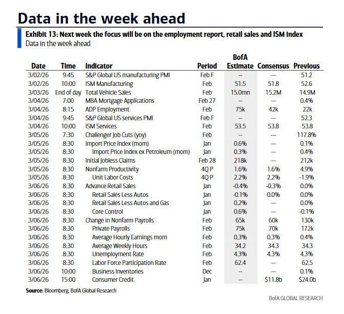 Key Events This Week: Payrolls, Retail Sales, ISM, Beige Book... And War In Iran