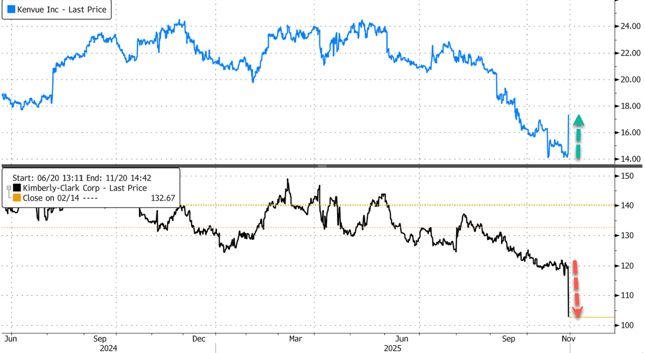 In markets, Kimberly-Clark shares tumbled 15%, while Kenvue shares jumped 20%.