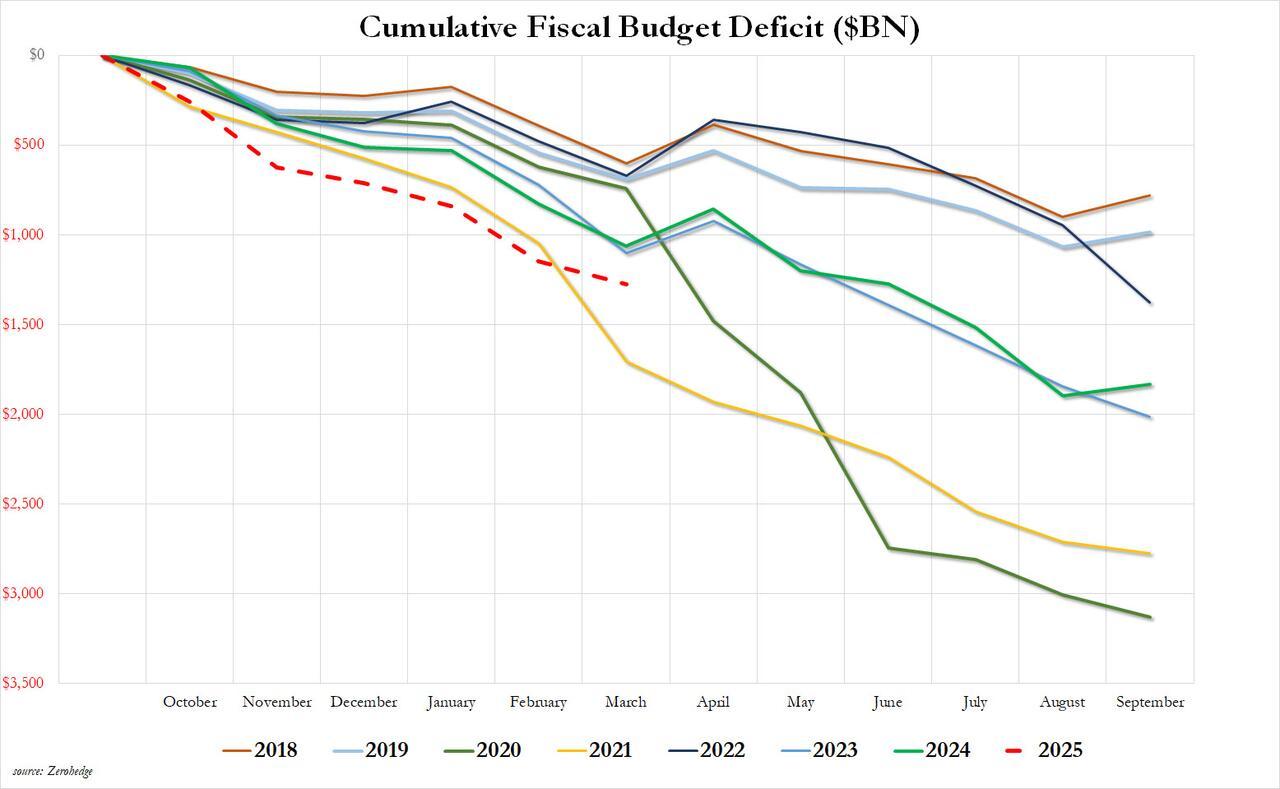 March Deficit Unexpectedly Tumbles To 5 Year Low As DOGE Cracks Down On Democrat Money-Laundering Schemes