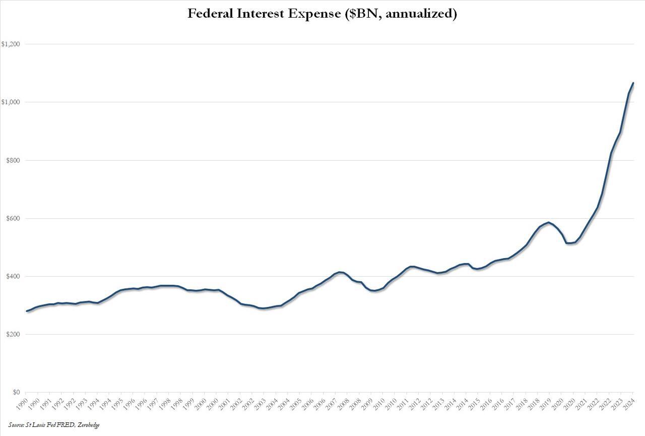 ... and especially interest expense, which as of the end of Biden's admin, at Dec 2024, hit a new record high of $1.124 trillion LTM, which is more than double where it was when Biden walked into the White House in Q1 2021.
