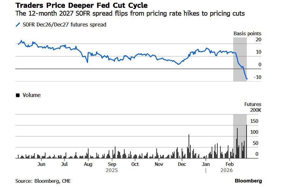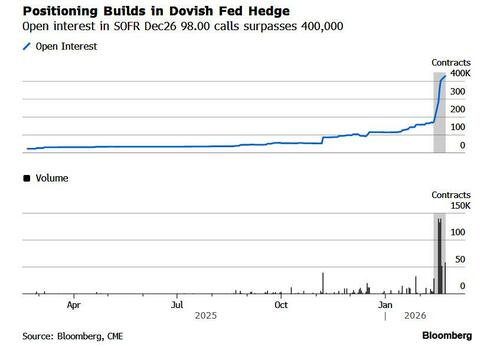As Bloomberg's Edward Bolingbroke observes, after months of consensus trades that the Fed's easing cycle will end in 2026, traders in US futures and options markets are suddenly piling on bets that the Fed will continue cutting rates well into next year instead of raising them.