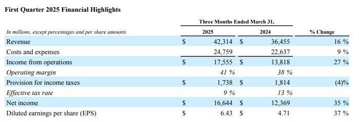 - Revenue $42.31 billion, +16% y/y, beating estimate $41.38 billion