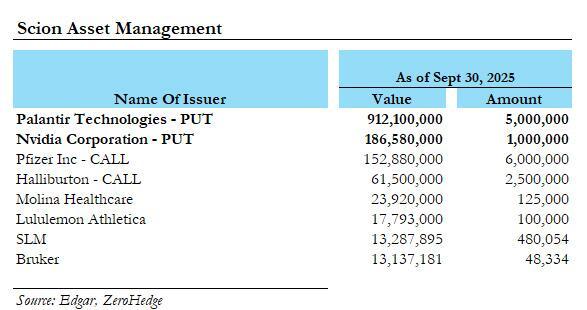 Scion Asset Management's latest 13F revealed that roughly 80% of its put positions were concentrated in the high-flyers Palantir and Nvidia.