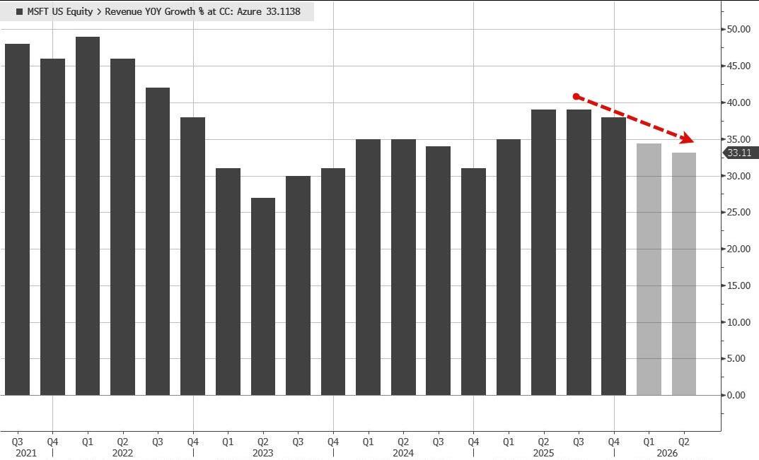 It's unclear exactly what is triggering the selling pressure, but could it be that too much CapEx is now bad news not good news? Or is that Azure growth slowed?