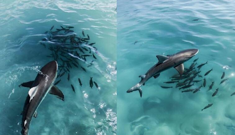 Large trades can no longer be absorbed “easily” by the system, causing prices to lurch to and fro. One minute we are at 100. The next minute at 105. Now the bid/offers start filling back in around 105, but how the heck did we jump from 100 to 105 in seconds? Nobody knows (well, we do, it is the symptom of faux liquidity). Just like the school of fish avoids the shark (images by Grok), only to congregate moments later in another location, the algos adjust to the new level and get back to their job of making small increments while avoiding being eaten by the big move.