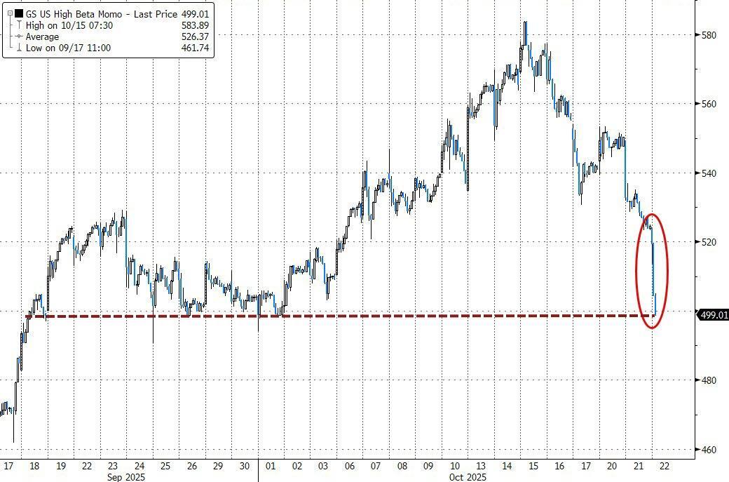As we detailed last night, the market is experiencing a strong degrossing in recent narrative themes, and that is most evident in Goldman's high-beta momentum basket which is getting slammed again this morning...