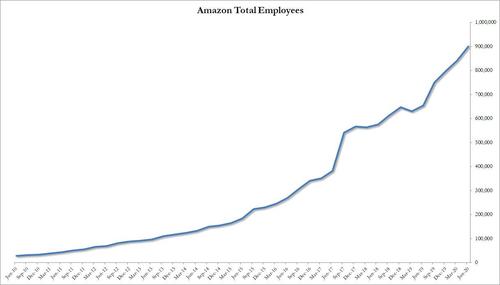 Amazon, which on June 30 of this year employed 900,000 workers...