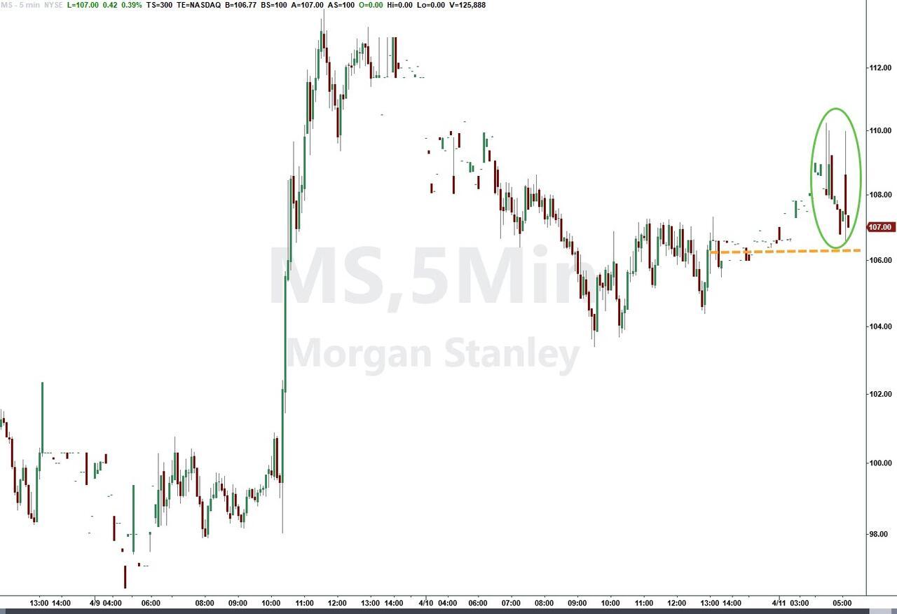 MS shares were up more than 3% at one pint after the announcement but that has faded as the open approaches...