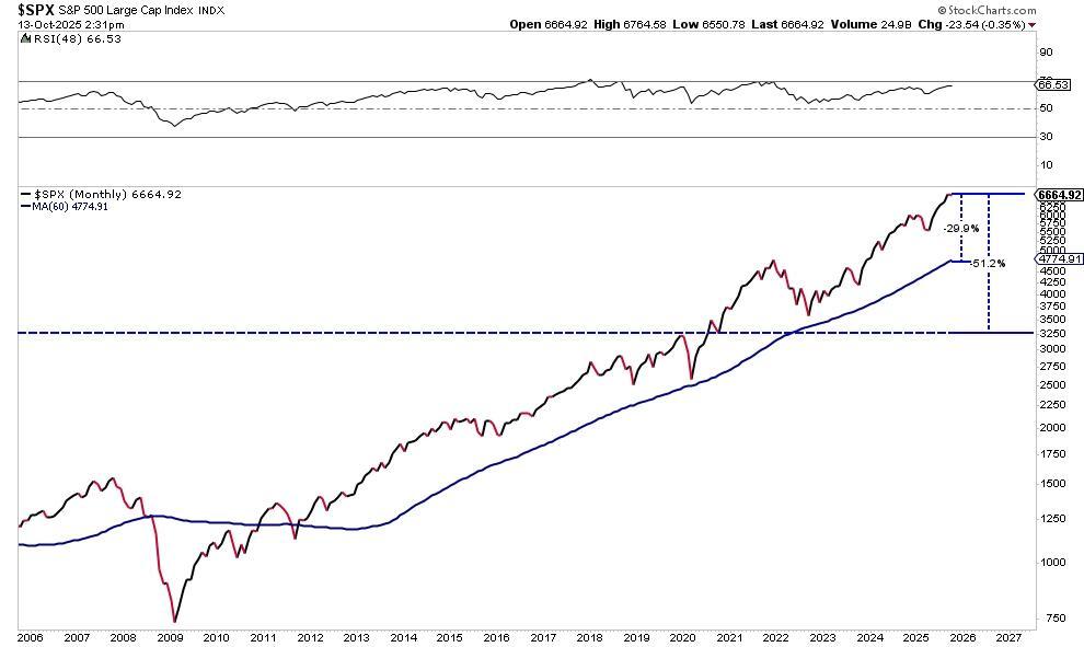 Begin with risk. While it may seem like it can’t happen, assume a 30% to 50% drawdown. In the S&P 500, a 30% retracement would only reset the market to the current bullish trend line from 2009. A 50% retracement would only reset markets to the beginning of 2020.