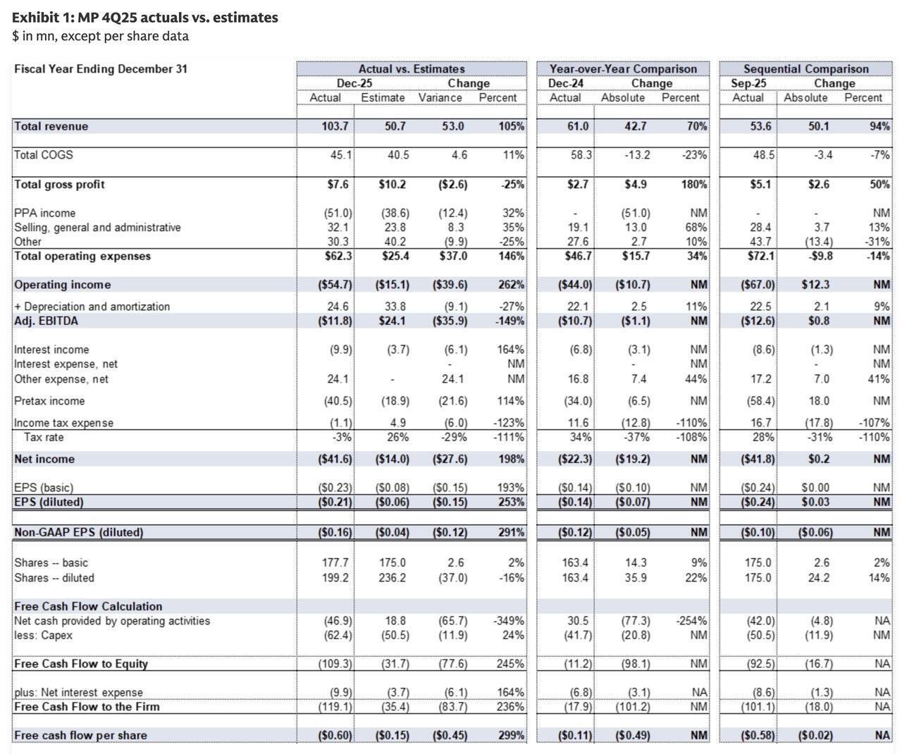 Together with its transformational public-private partnership with the U.S. Department of War, these initiatives position MP to scale domestic magnet production, support customers such as General Motors, and accelerate the buildout of a fully integrated U.S. rare earth magnet supply chain in 2026 and beyond.