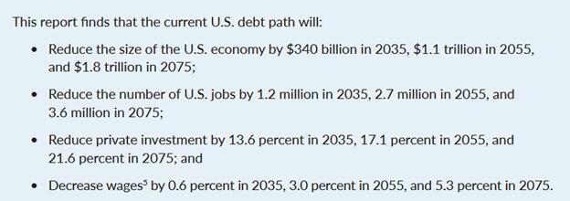 To help quantify the economic impact of large deficits, we share the graphic below from Rising National Debt Will Cause Significant Economic Damage by the Peter G. Peterson Foundation, May 2025.