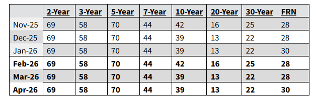 - $25 billion of 30-year bonds on Feb. 12