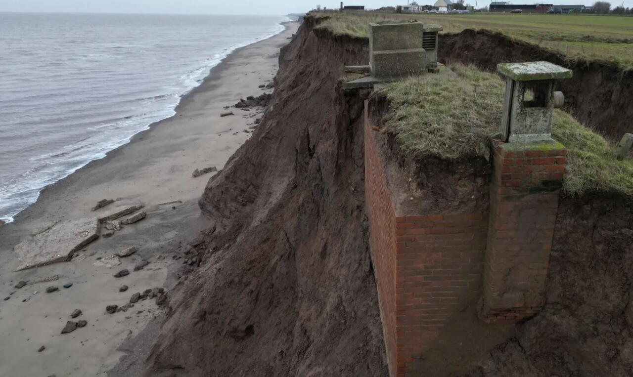 A nuclear bunker on the East Yorkshire coast is close to falling into the sea after decades of coastal erosion, according to the BBC. The structure near Tunstall, built around 1959 as a Cold War lookout post, was once more than 100 yards from the shoreline but is now dangerously exposed on the cliff edge.