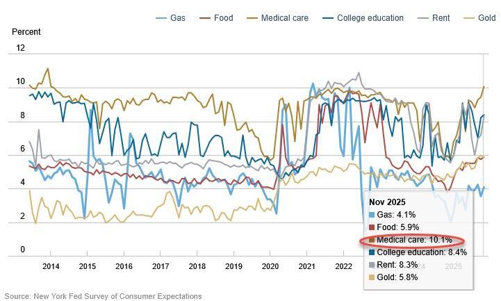 NY Fed Consumer Survey Shows Steady Inflation, Despite Soaring Expectations For Medical Care Costs