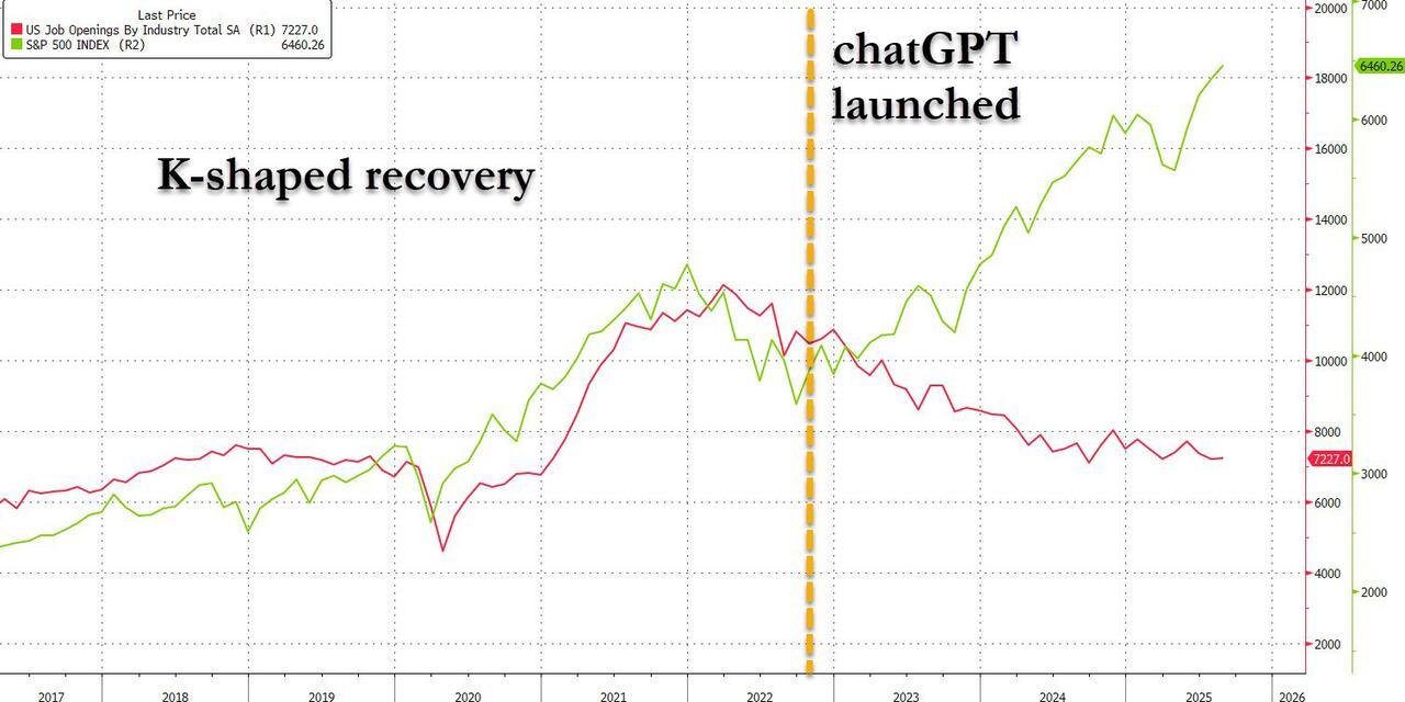 As Bloomberg puts it, the latest Fed Beige Book underlined a ‘deepening K-shaped split’. The very wealthy are still spending; everyone else is struggling. That split is now evident all over. AI firms are booming; most aren’t. Moreover, a day after the Financial Times spoke of people looking for “crumbs” in parts of the US, it happily reports ‘Megadeals hit new record as Wall Street’s animal spirits roar back.’ That will please the crumb-seekers.
