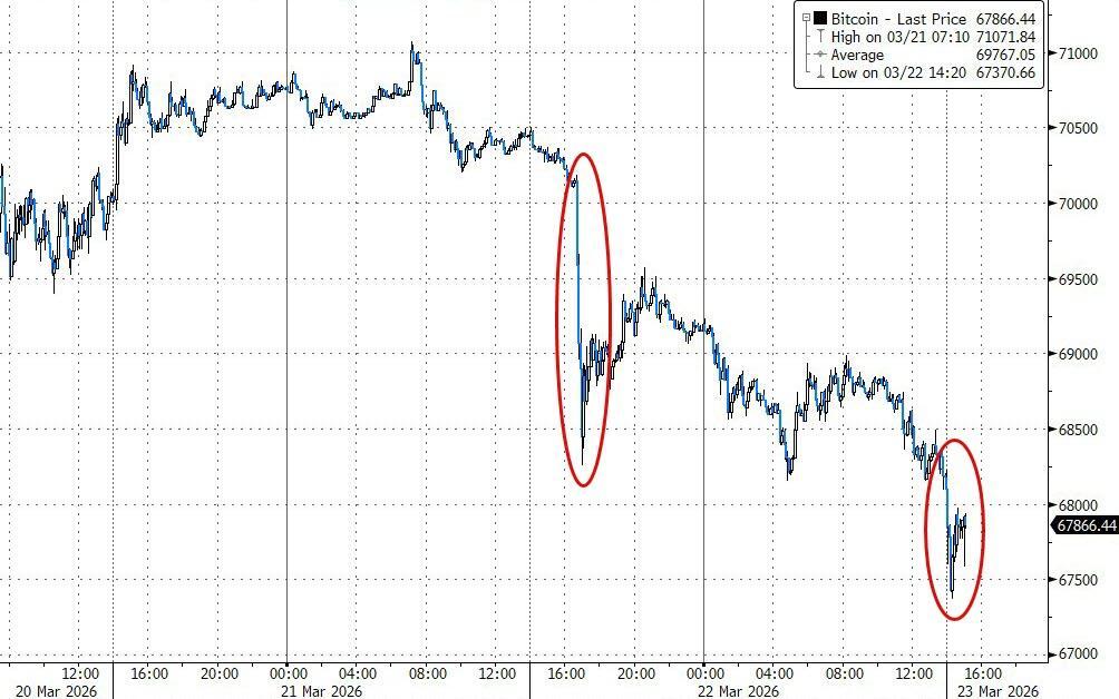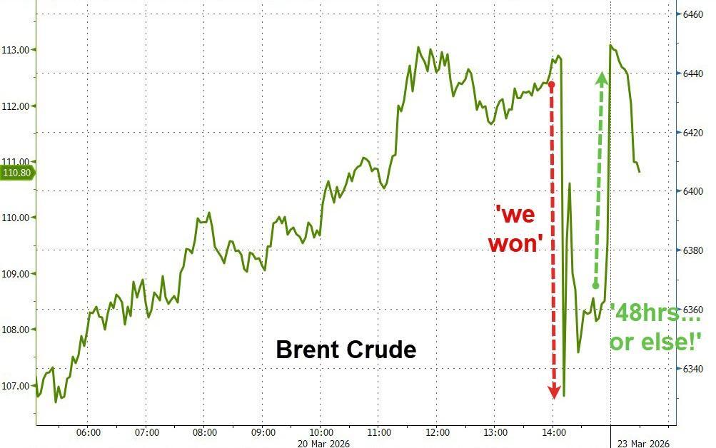 Following a weekend where geopolitical headlines swung from "winding down" (Friday after the close) to threats, deadlines, and "obliteration" tit-for-tat talk suggesting no end in sight, it is perhaps no surprise that oil prices are up (and so equity futures are down) as we open Sunday night.