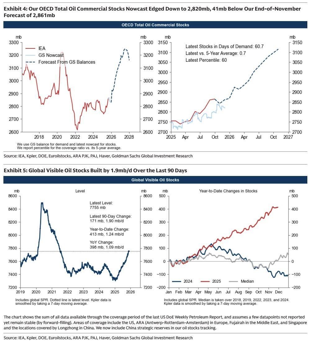 The glut thesis is hardly new, and has been popularized by banks such as Citi and Goldman for the past year. As Goldman analyst Daan Struyven wrote in his latest oil tracker note, "global visible oil stocks have built by nearly 2mb/d over the past 30 days." The banks expects them to grow significantly more in the coming years.