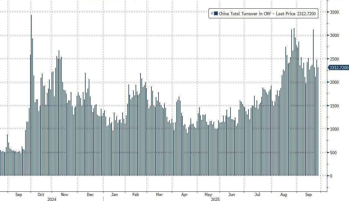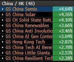 Thematically, Goldman's China Semis basket 4.6% higher after Micron gave positive outlook in its Q4 earnings and Huawei unveiled a 3-year plan to overtake Nvidia. Solar, Solid State Battery, Anti Involution also stood out with strong gains.