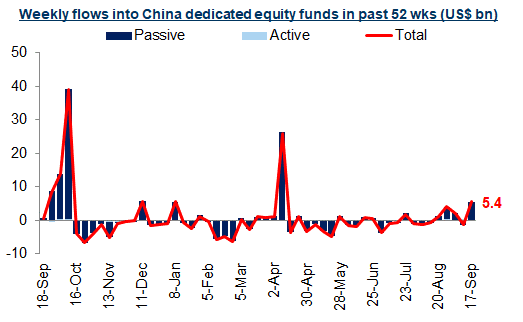 For example – last week’s inflow into China-dedicated equity funds was US$5.4b, the largest weekly inflow since Apr of this year