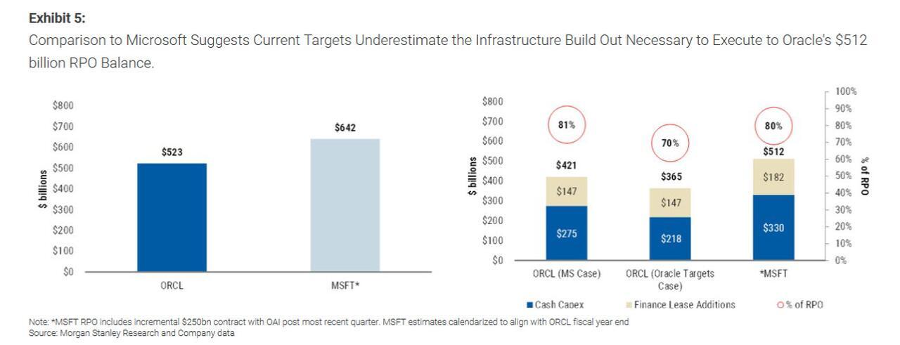 This is a problem because despite Larry Ellison's best efforts to convince the market that Oracle has more than enough projected revenue - and a massive enough backlog - to grow into its bloated balance sheet, which is approaching $200 billion including off-balance sheet exposure, and refute such claims such as the following from Barclays which warned two months ago that the market "Underestimates the Infrastructure Build Out Necessary to Execute to Oracle's $512 billion RPO Balance"...