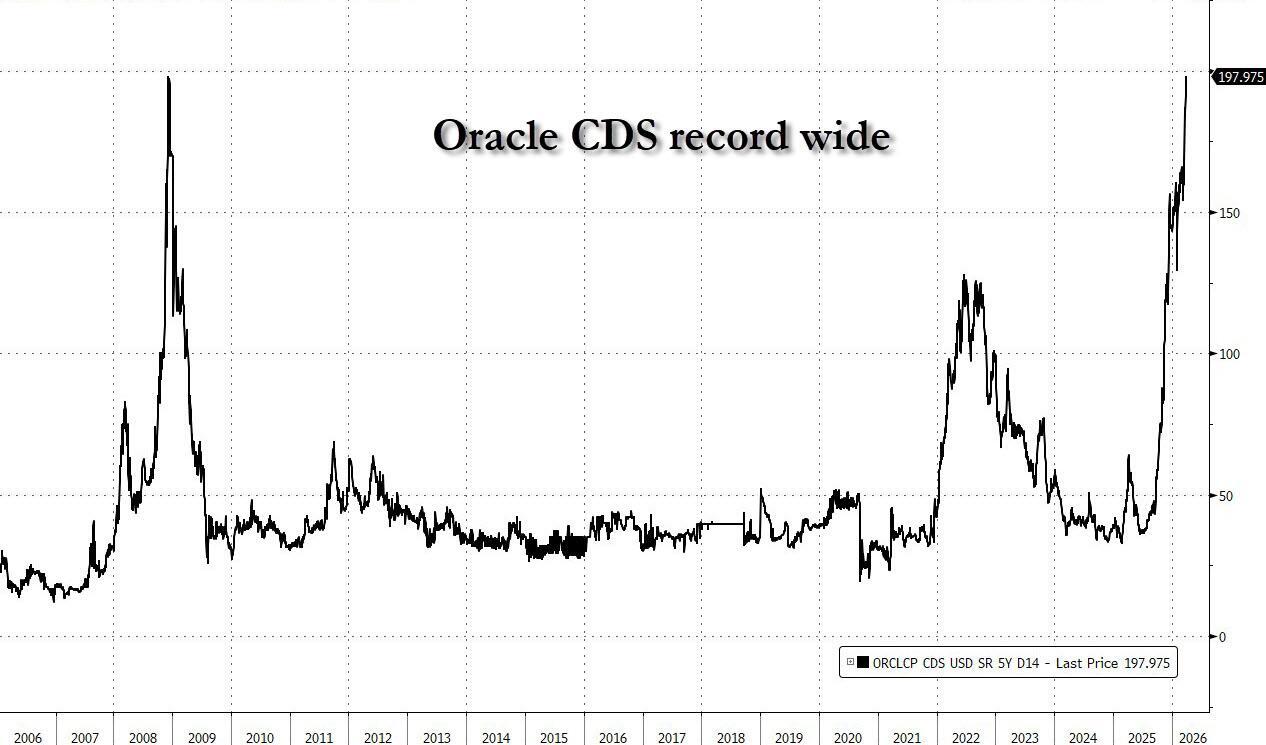 Two months ago, when ORCL announced it would raise $50 billion in a combination of stock and bonds to ease market fears about its soaring funding costs and lack of actual revenues and "to build additional capacity to meet the contracted demand from the company’s largest cloud customers, including Advanced Micro Devices, Meta Platforms, Nvidia, OpenAI, TikTok and xAI" we said that this latest example of financial engineering, which perhaps most importantly was meant to push its soaring Credit Default Swap lower, was doomed to fail.