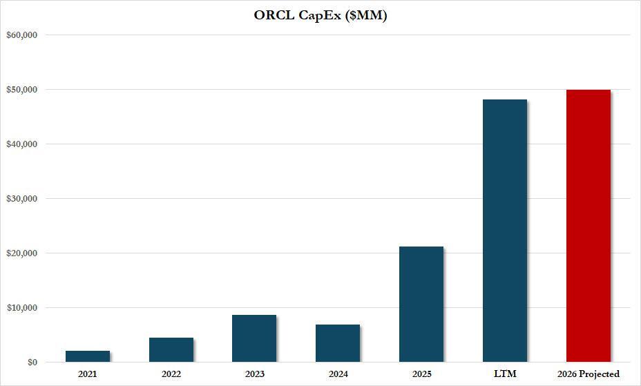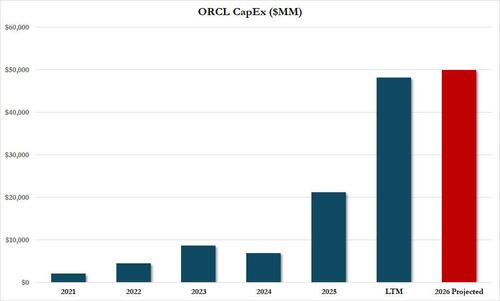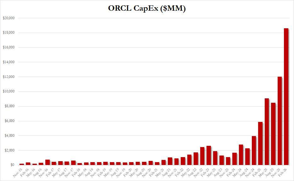 And while the above is all good, what wasn't so good is that ORCL's Q2 capex came in at a stunning $18.6 billion, triple the number from a year ago, and 50% higher than the Q1 capex print. To say that the company is incinerating money is doing a disservice to incinerators.