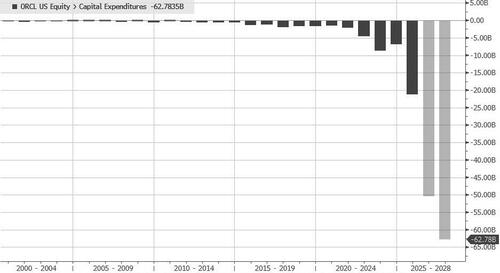 There was no mention of what 2027 capex will be, so expect some very pointed questions on the call because alongside massive capex comes just as massive cash burn, which, as shown below... is terrifying. As readers are well aware, the question for the past 6 months has been: just how much debt will ORCL need to fund it?