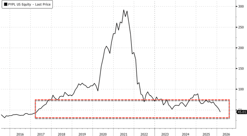 Before the first Bloomberg report hit, PayPal shares in New York were at 2017 lows (with a market capitalization of around $37 billion) and were down more than 85% from the 2021 high of $291.48.