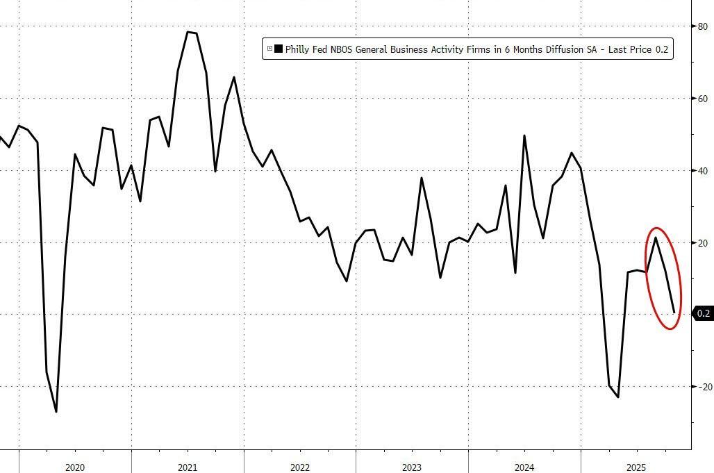 Desperate for any information amid the government shutdown-invoked vacuum of macro data, this morning we get a glimpse of more 'soft' survey data, showing that Non-Manufacturing activity in the Philadelphia Fed region softened overall,
