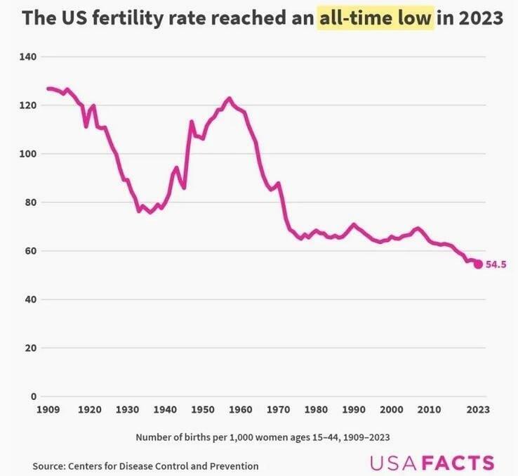 It is a fatal dysfunction of the social factory, whose incentive structure should ideally produce at least enough children to stabilize the population.