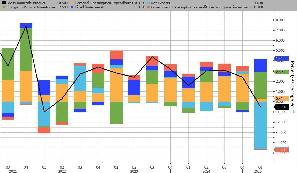 Overall, the report painted an uglier picture of the US economy in Q1, although it is likely a "kitchen sink" because in Q2 we expect that the bullwhip from the reversal in imports (a boost to GDP) coupled with the deferred surge in personal consumption to propel Q2 GDP to 3% if not higher.