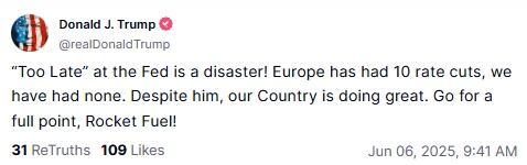 Finally, one thought - is this Trump pivoting his rage from Musk to Powell - a far easier, and less wealthy, opposition.