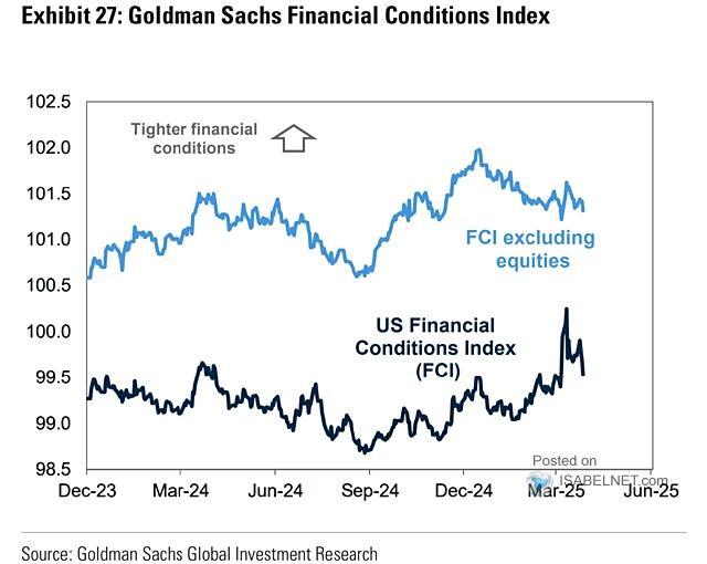 However, as noted above, economists are rapidly reversing their predictions about the recession and now suggest that President Trump’s actions, while previously thought to be an economic disaster, might be beneficial. Furthermore, financial conditions are improving, which also supports economic activity. If that trend continues, particularly if the Fed resumes cutting interest rates, it should start to feed into consumer confidence. If consumer confidence strengthens, which would be logical following recent tariff resolutions, this should reduce recession probabilities further.