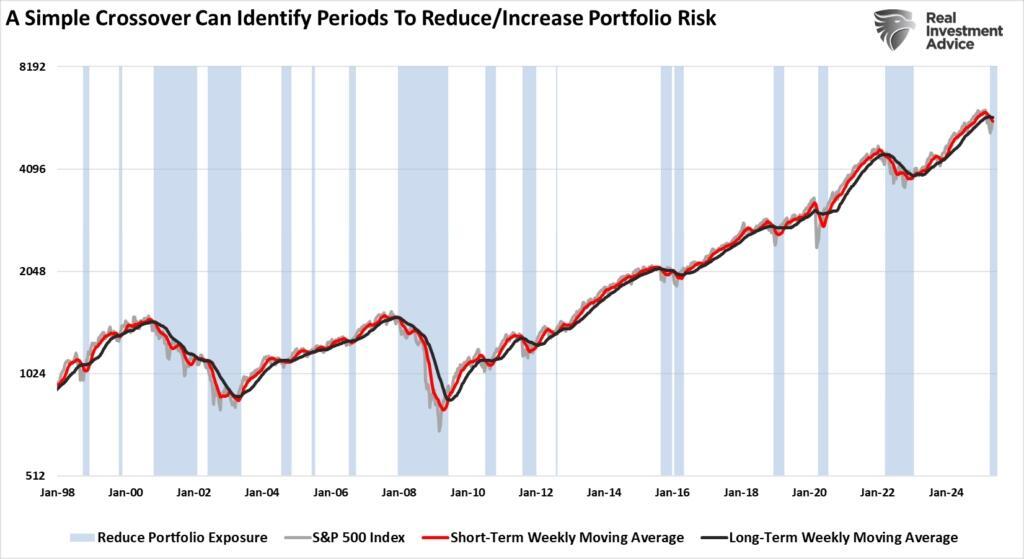 “However, patience will likely pay off here. As noted previously, we are still on a weekly sell signal, which has historically led to short-term market underperformance. As shown, previous periods of historical weekly moving average crossovers typically involve a more extended period of consolidation or corrective price actions. The main exception to that rule was 2020, when the Federal Reserve intervened with massive monetary support. With yields rising and the Fed on hold, no excess support is coming into the market other than a surge in corporate buybacks. However, those are due to decline starting next month.“